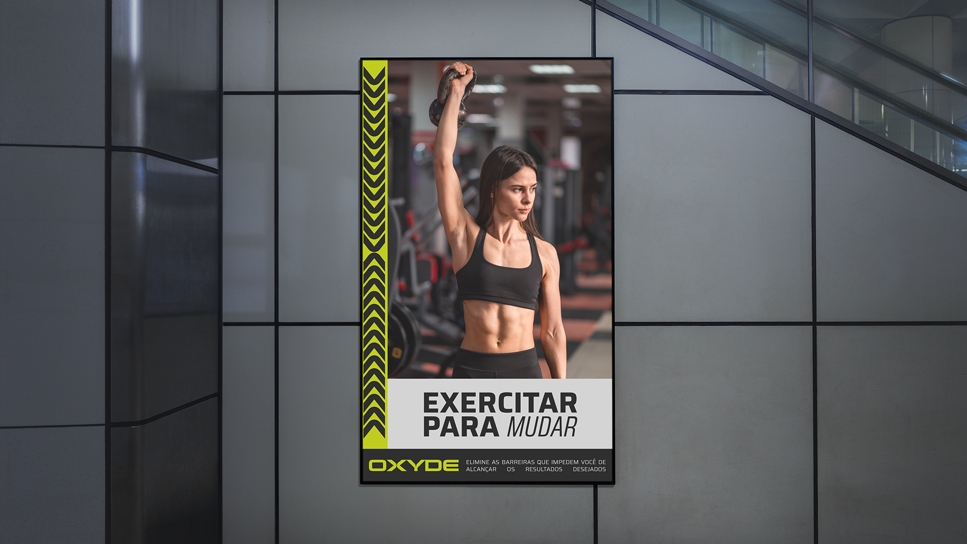 PT// Oxyde Gym é uma academia na cidade de Barreiras localizada no empreendimento da Construtora Solare, o City House. A academia chega à cidade trazendo modernidade e sofisticação com uma linguagem jovem e atual. Para desenvolver esse projeto foi importante entender tudo que a Oxyde representa para o bairro: mais comodidade para proporcionar bem-estar e saúde e qualidade de vida para os seus moradores.